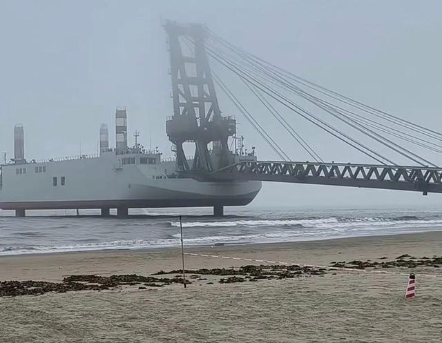 据悉,这些巨大的驳船如同海上堡垒,能够在浅滩中保持稳定,并通过长长的钢铁栈桥与陆地联通。如此设计,显然专门为抢滩登陆而生,让人惊叹不已。